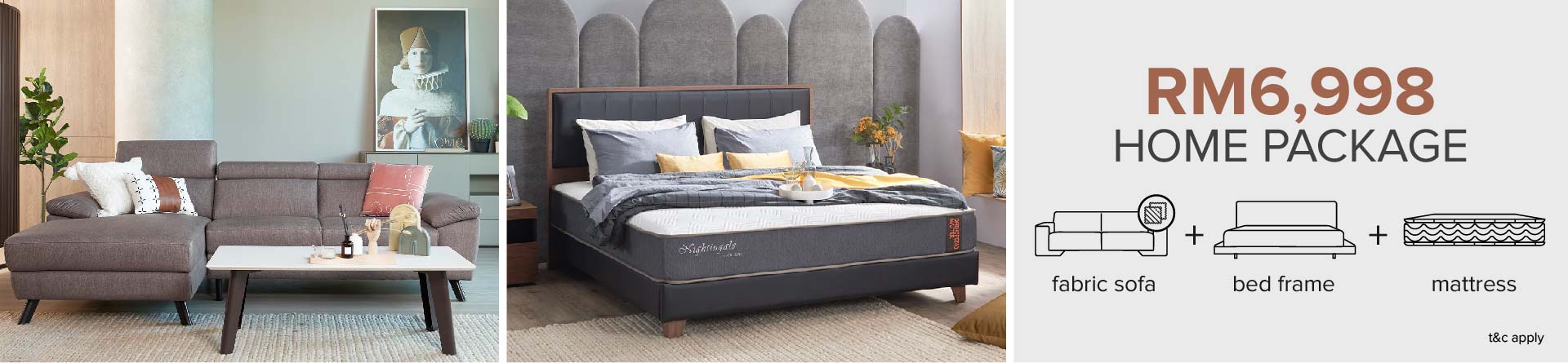 Want a different mattress type or bed frame design? You can customise your home package to fit to you. Experience the ease of furniture shopping now.